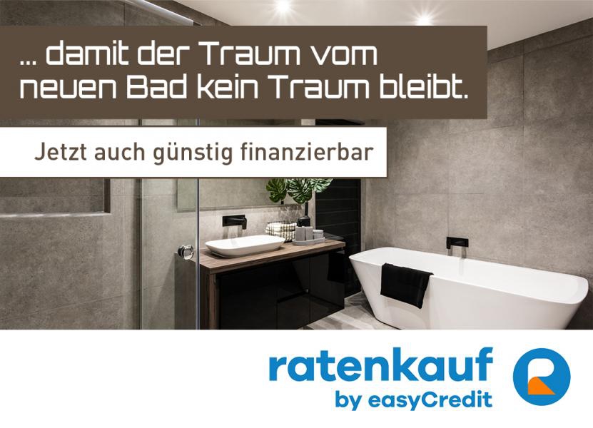 Einfach. Bezahlbar.FinanzierungWir haben schon viele moderne und schöne Bäder realisiert. Mit dem neuen Service zusammen mit ratenkauf by easyCredit können nun auch Sie sich den Traum vom neuen Bad erfüllen. Als erster Badplaner der diesen Service anbietet, machen wir Ihnen ein neues Bad bezahlbar.